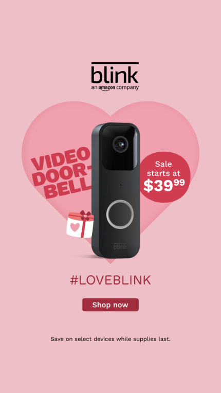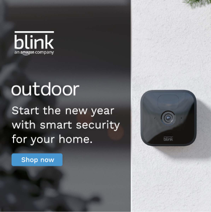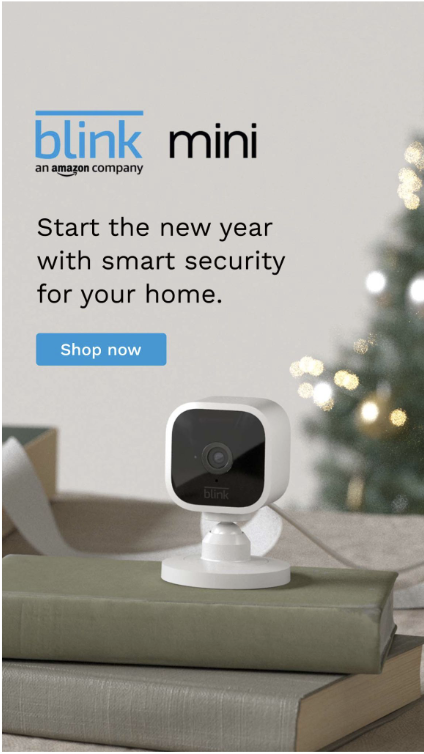 Digital holiday ads for Blink mini camera both indoor and outdoor.
