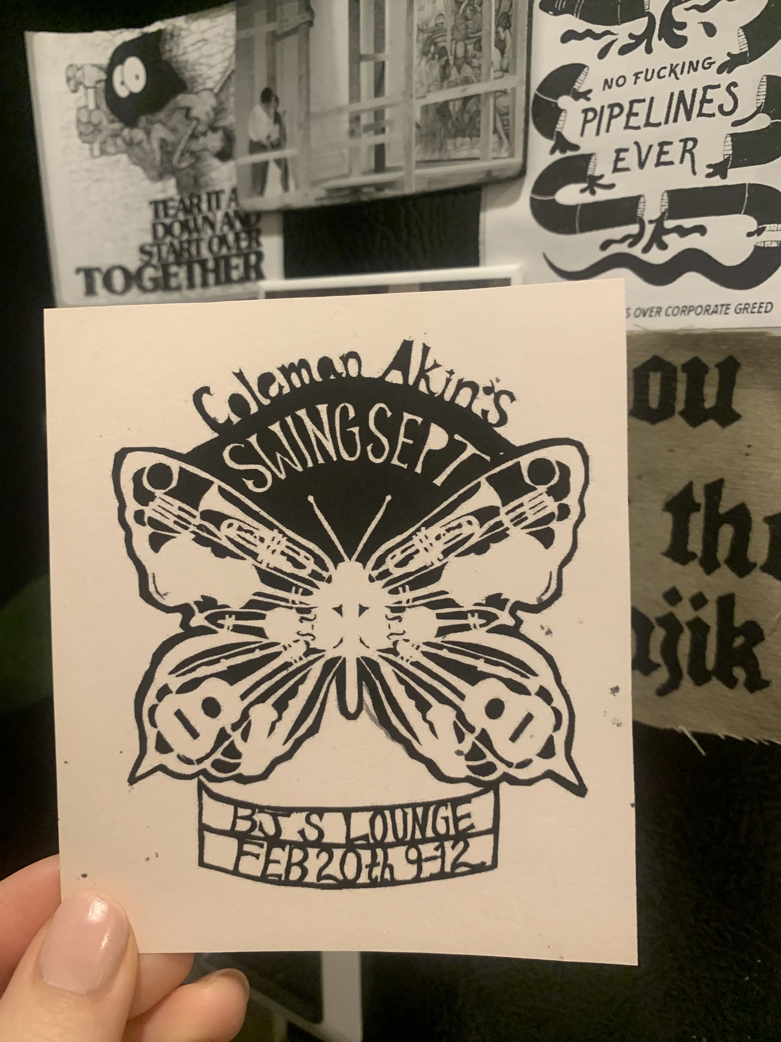 The visual identity for Swing Sept includes: logo, stylized illustration and technique, photo treatments, animated social media campaign, stickers, flyers, and CD design. These assets live online and on the streets of New Orleans neighborhoods.