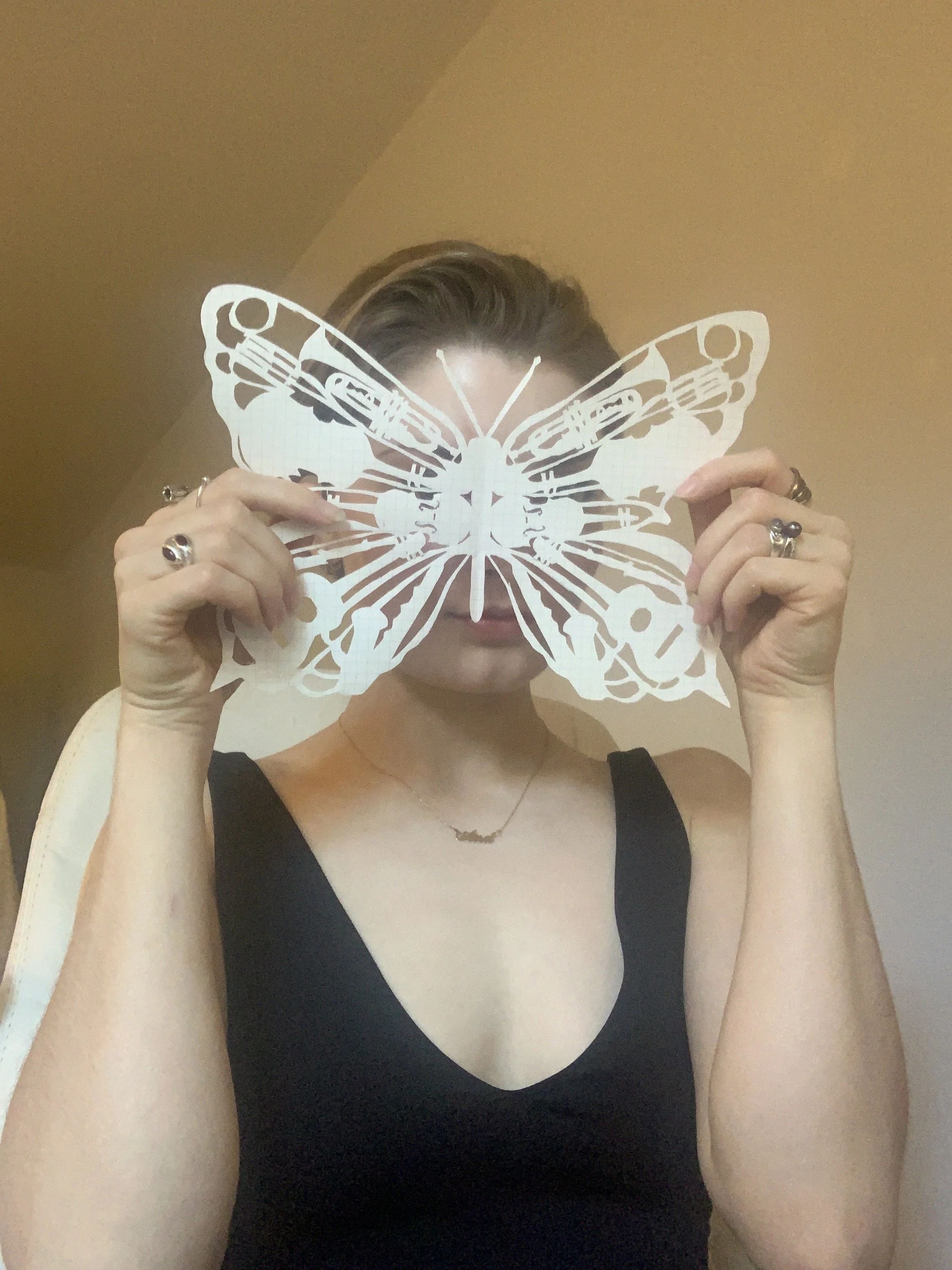 The delicate wings are a nod to art deco of the 1920s, where the repetoire of songs originates.